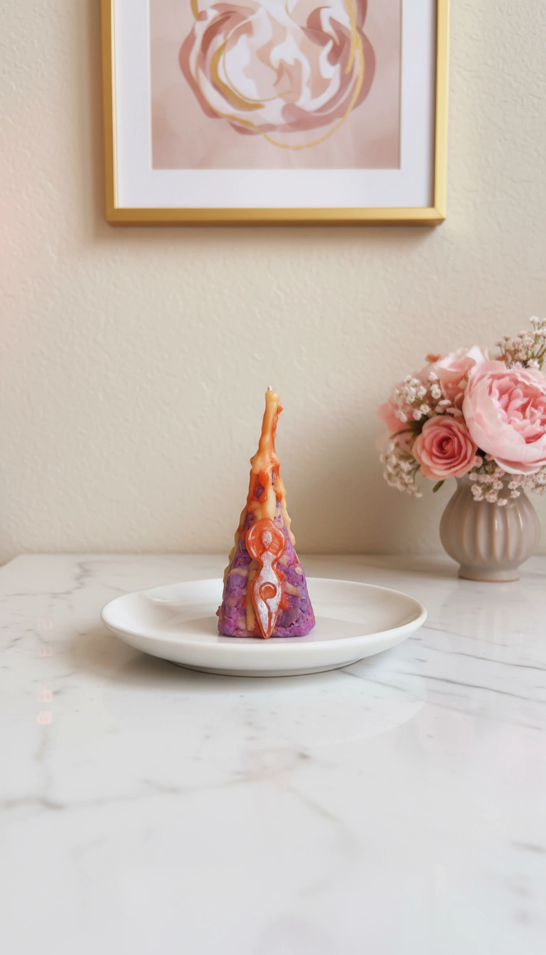 Ideal para rituais, meditação ou simplesmente para trazer energia positiva ao seu dia a dia, ela é mais do que uma vela: é uma experiência sensorial e energética, feita para tocar sua alma e despertar seu poder interior. Cada detalhe, do formato às cores, carrega intenção, cuidado e magia, tornando cada peça única e especial.